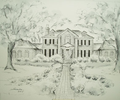 The following pen & ink renderings were commissioned for the Charlotte Mint Museum Auxilliary Home Tour 2008